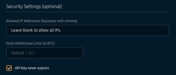 Now, with your API key ready, you need to save them in a secure location and use them when creating or configuring your Nicehash mining account on Minedash.
